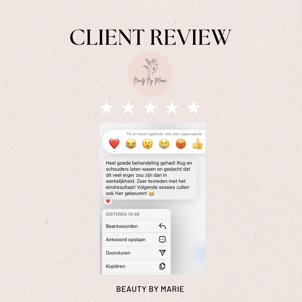 Klant betaalt een aanbetaling voor de behandeling en gaat hiermee akkoord. Een aanbetaling wordt nooit terugbetaald maar wordt tegoed gehouden voor de volgende afspraak.